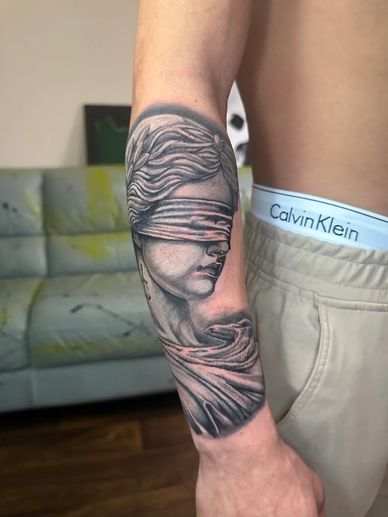 This tattoo was an incredible experience from start to finish. My client, passionate about Egyptian mythology, had a clear vision: to capture the essence of this rich culture in a single piece. From the mysterious mummy on the inner arm to the elegant female figure with pharaonic details, every element tells a part of the story.